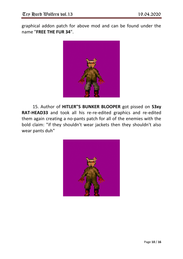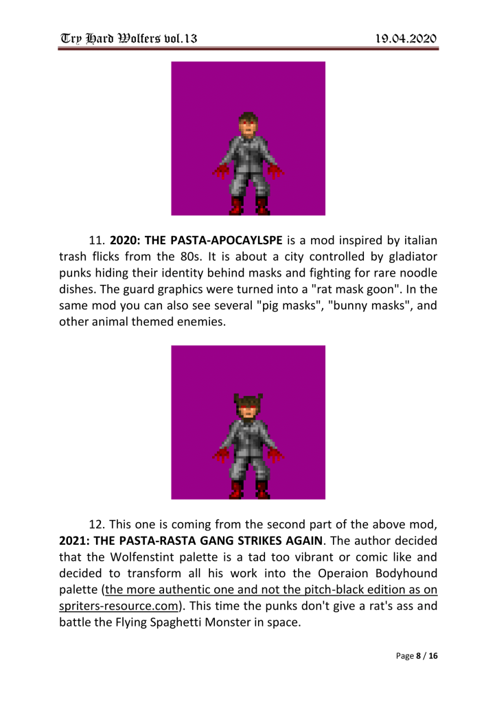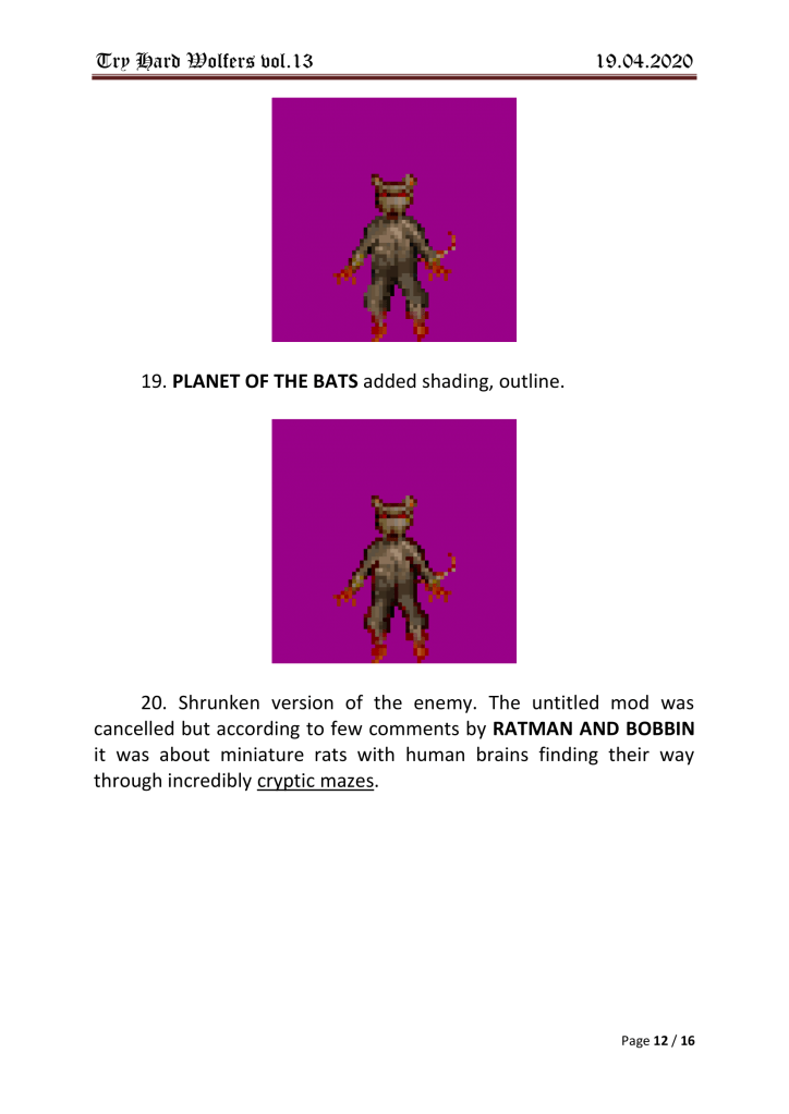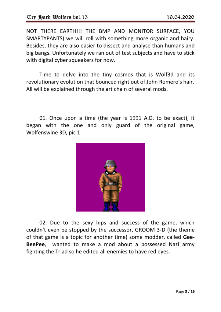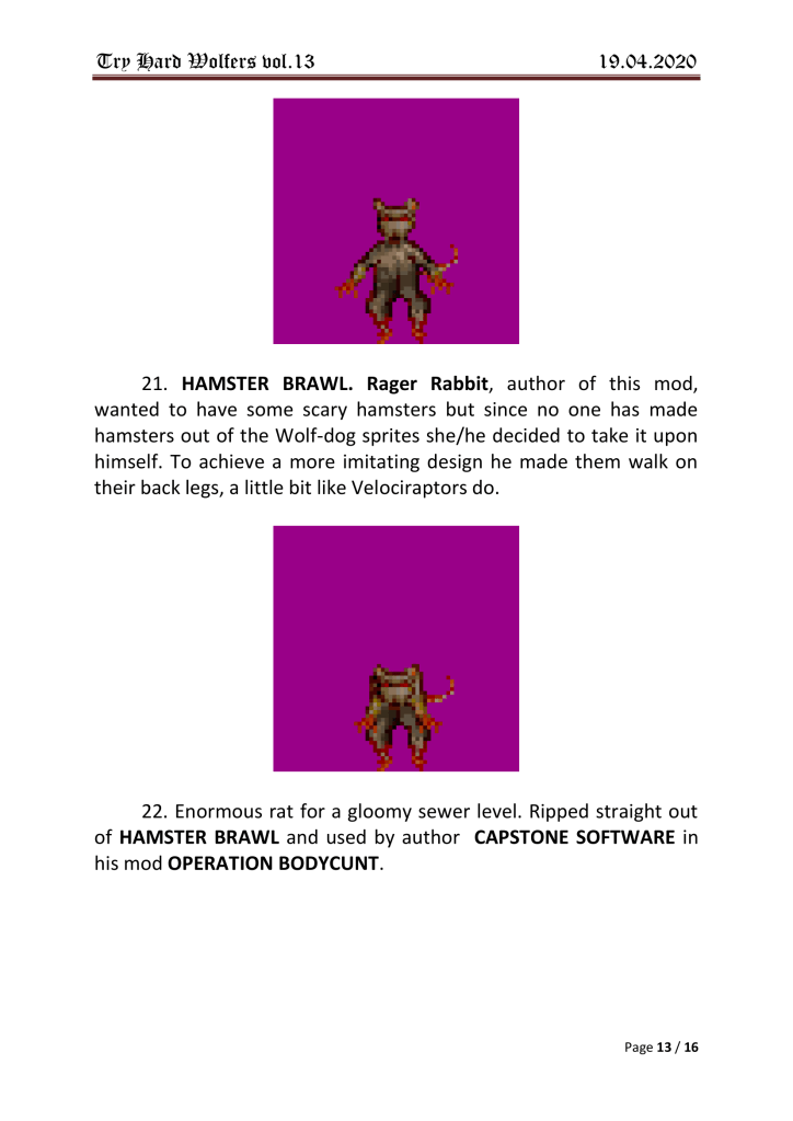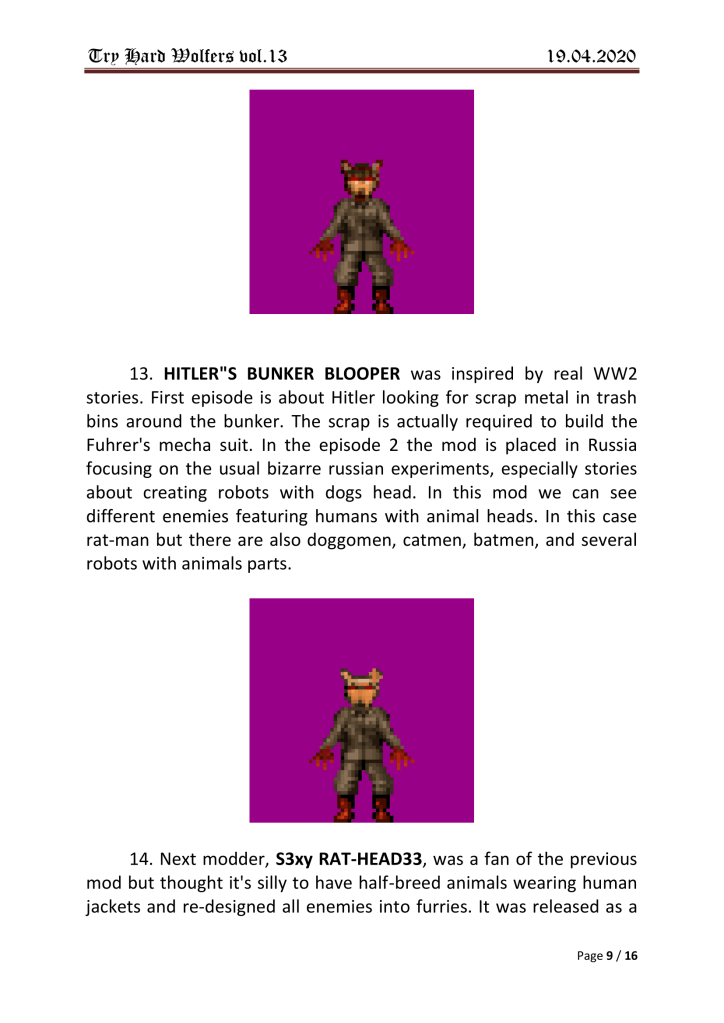 Vol. 13 – 19th of April Posted bytryhardwolfApril 20, 2020Posted inUncategorizedTags:graphics, rats, Wolf3d, Wolfenstein 3D Share this: Share on X (Opens in new window) X Share on Facebook (Opens in new window) Facebook Like Loading... Related