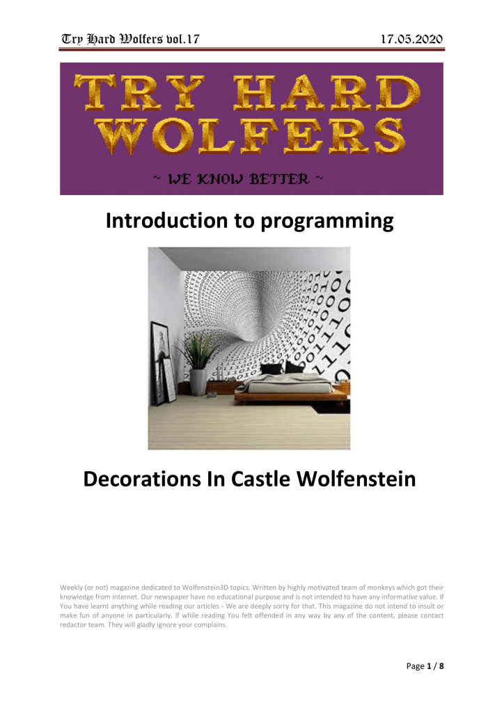 Vol. 17 – 17th of May Posted bytryhardwolfMay 17, 2020May 17, 2020Posted inUncategorizedTags:code, items, objects, Wolfenstein 3D Share this: Click to share on X (Opens in new window) X Click to share on Facebook (Opens in new window) Facebook Like Loading... Related
