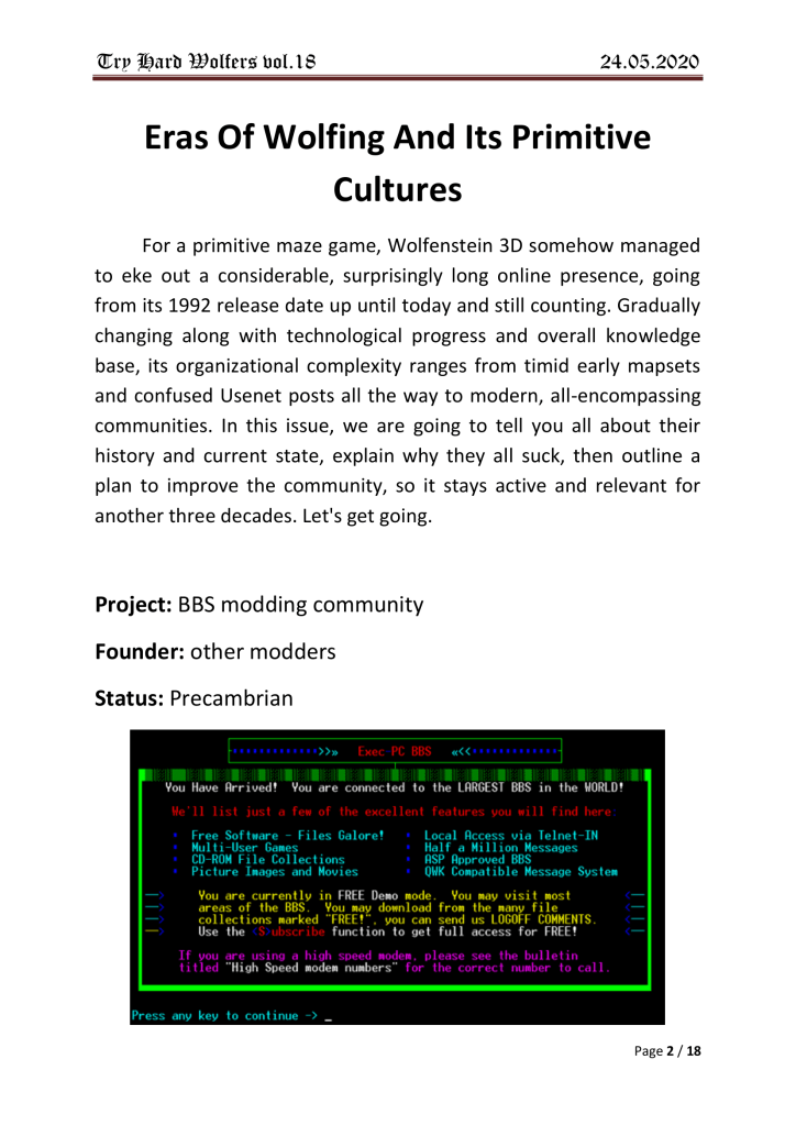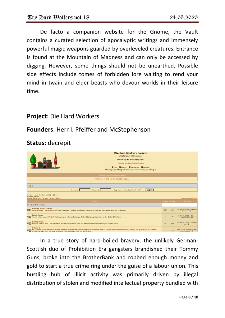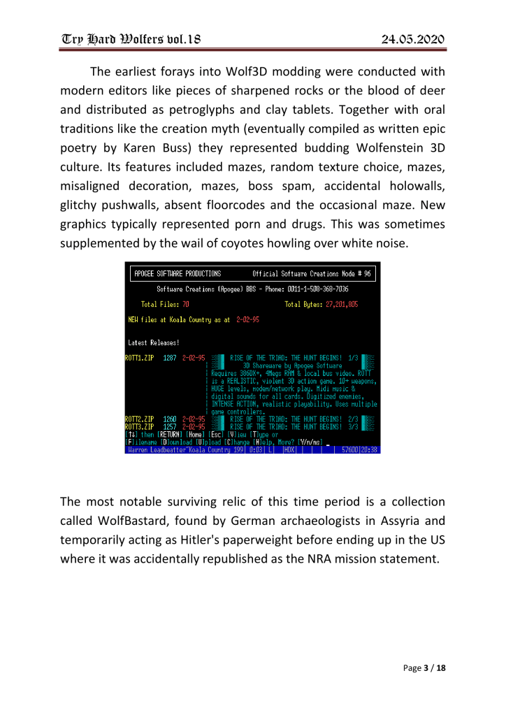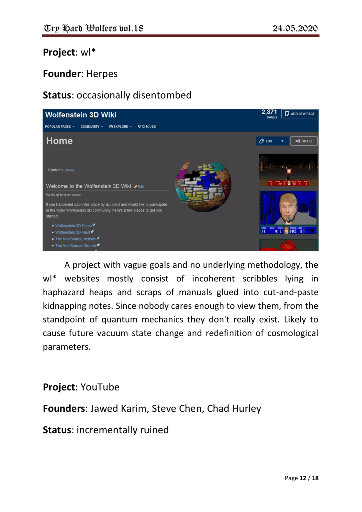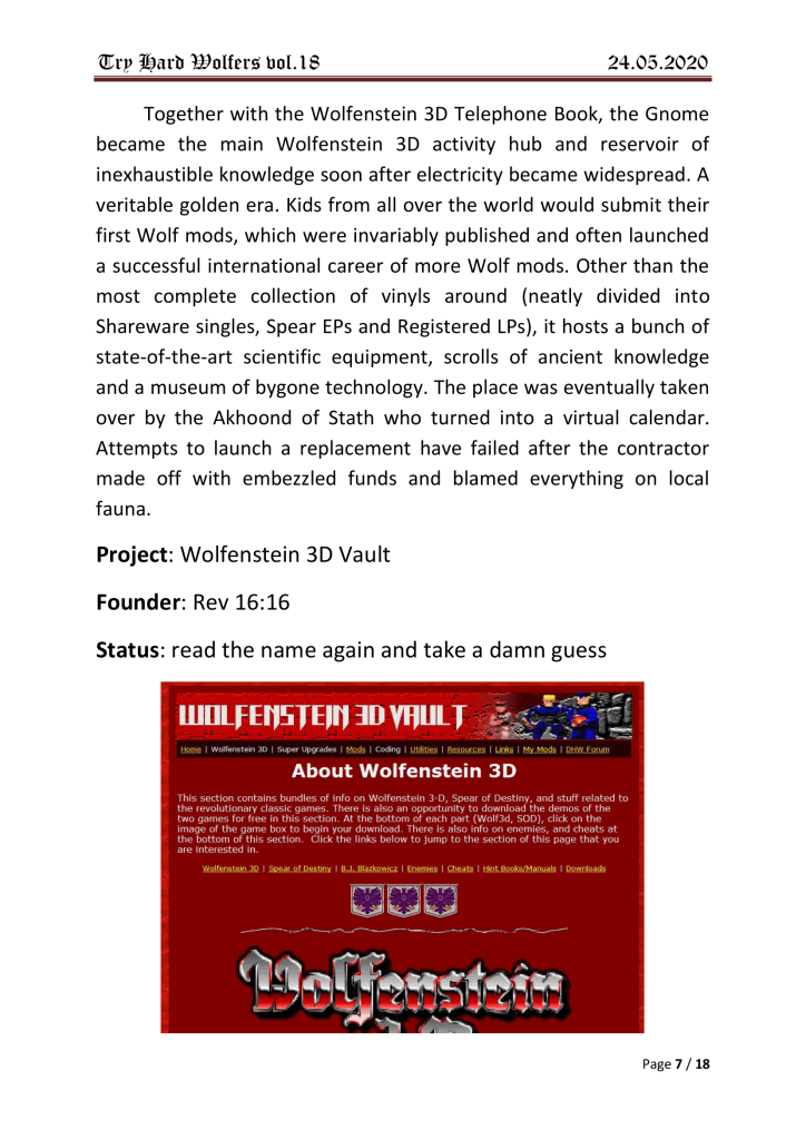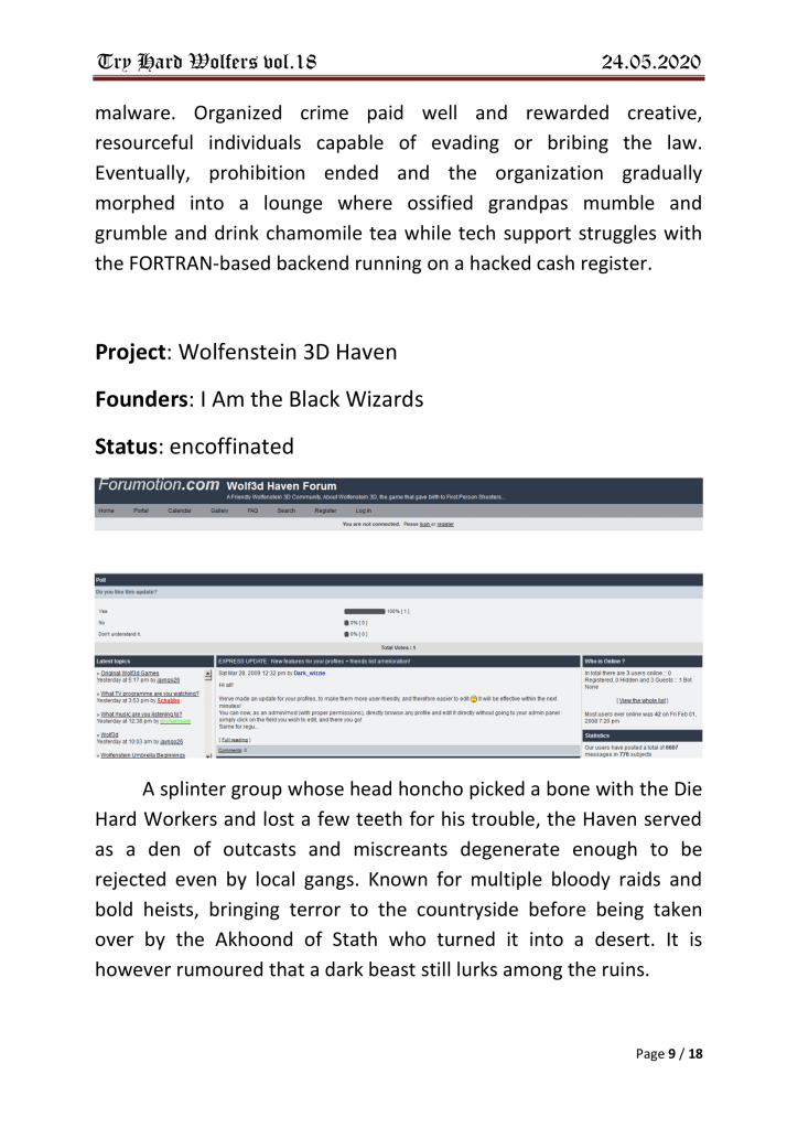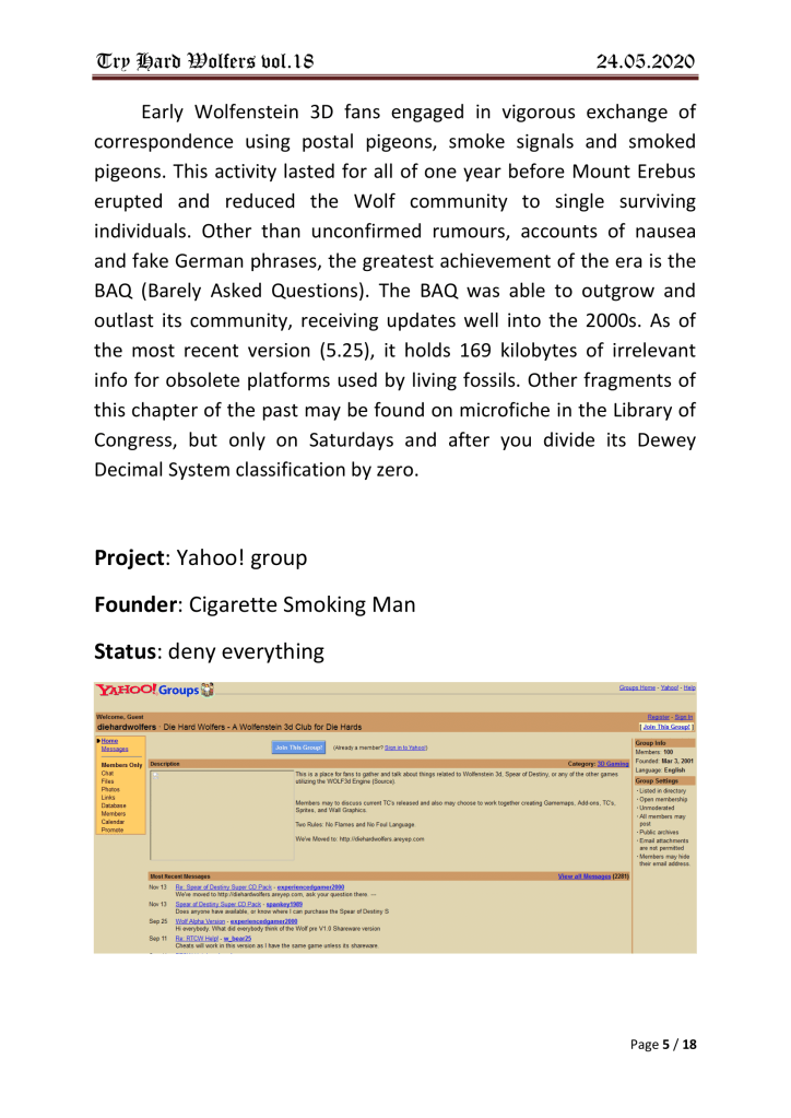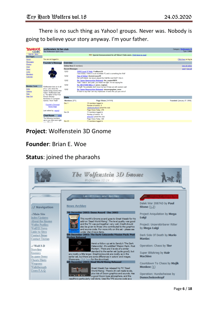 Damn.. not a single mention of neither the old “wolf3dfanclub” at yahoo, nor the epic “Real Wolfers”-forum back in 1999.. Sad!