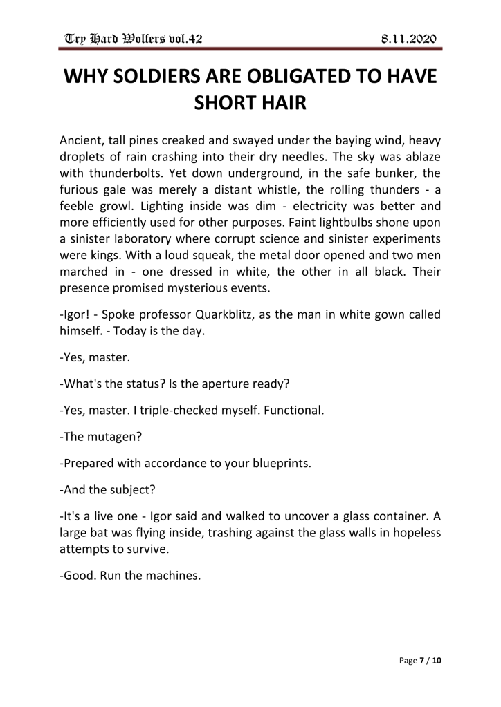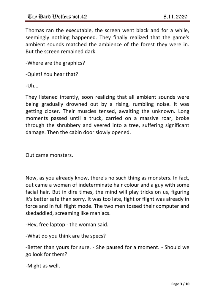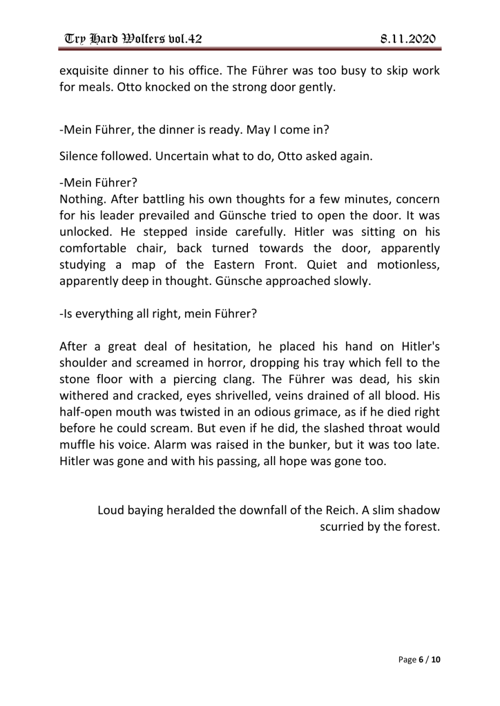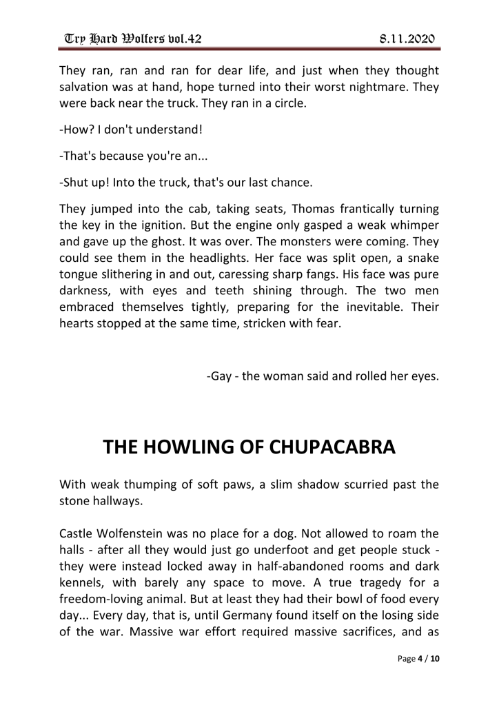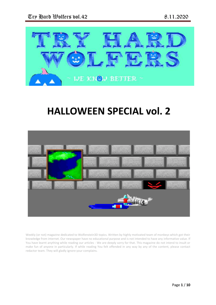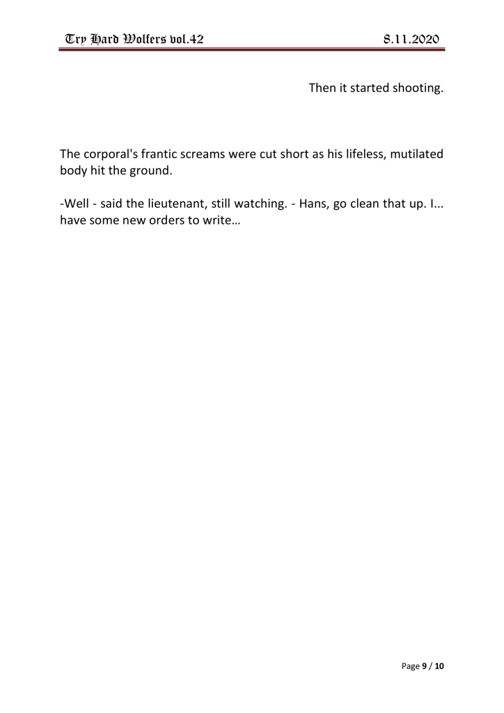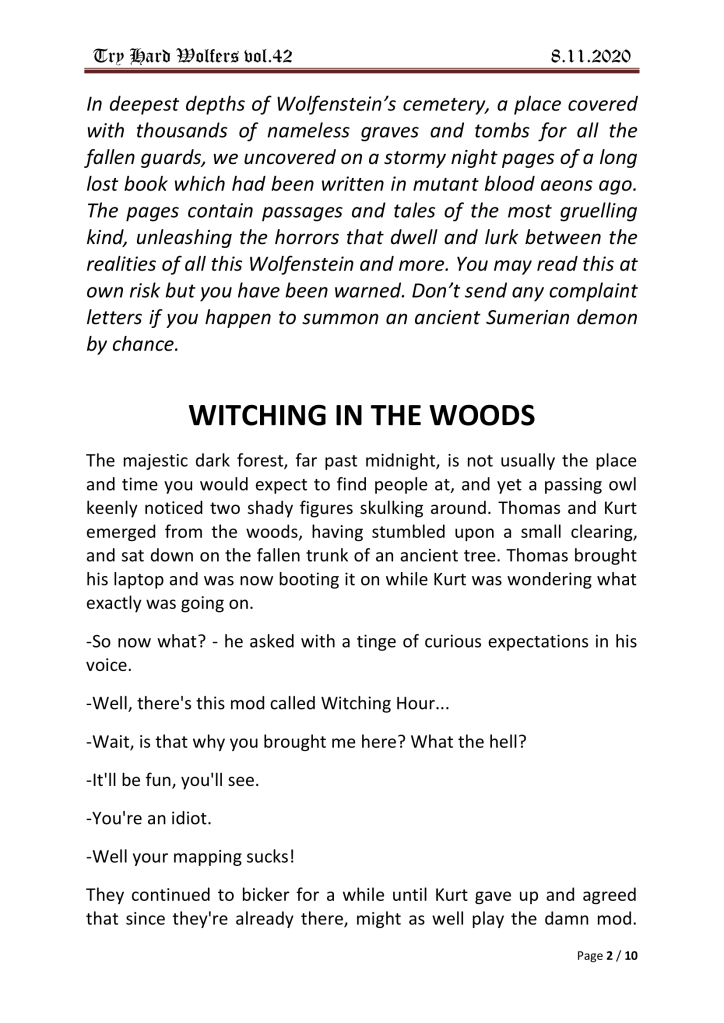 Vol. 42 – 8th of November Posted bytryhardwolfNovember 8, 2020Posted inUncategorizedTags:creepypasta, halloween, Wolfenstein Share this: Share on X (Opens in new window) X Share on Facebook (Opens in new window) Facebook Like Loading... Related