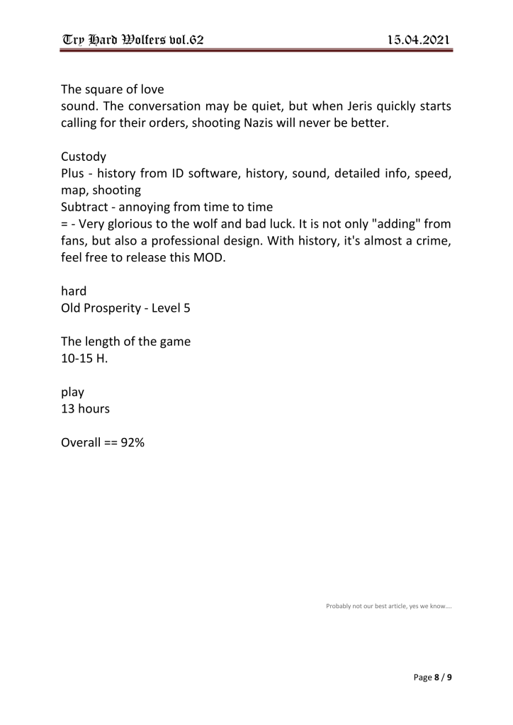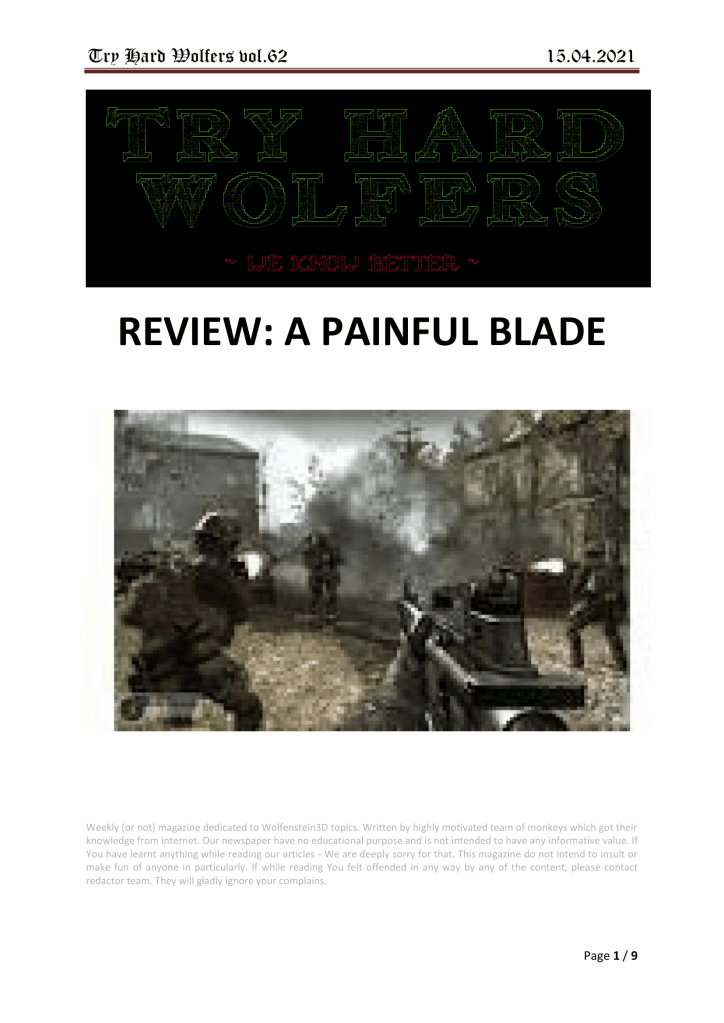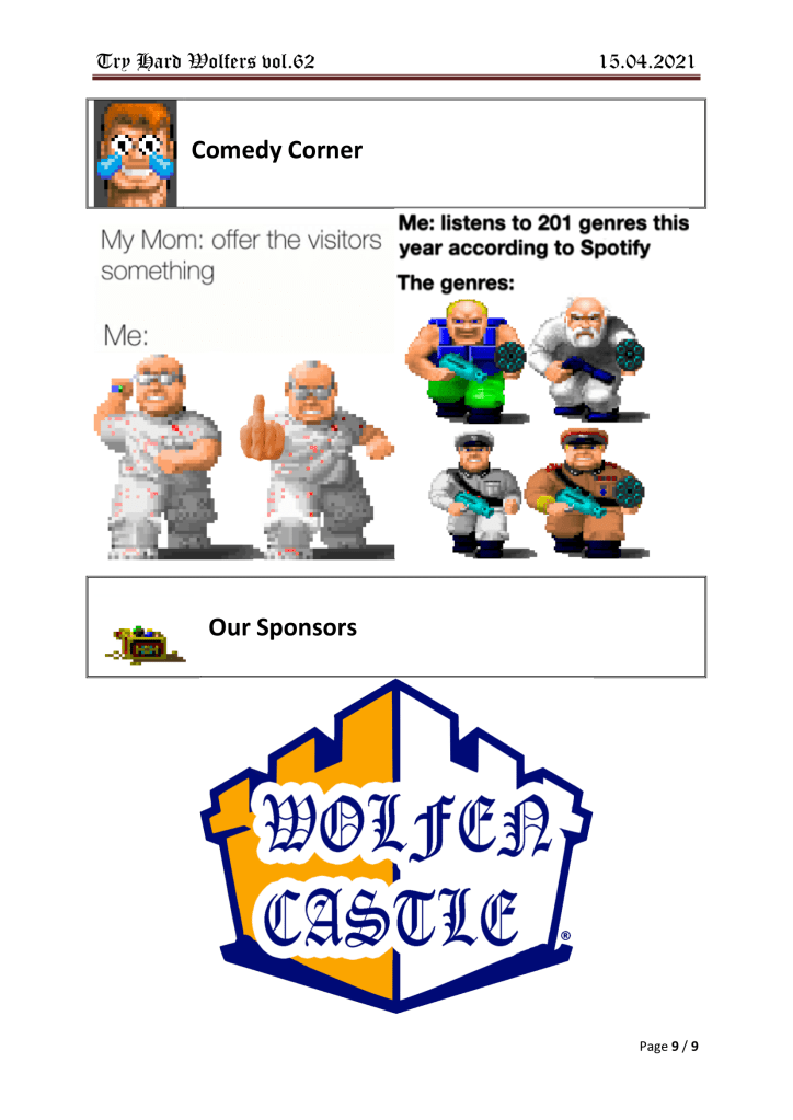 Vol. 62 – 15th of April Posted bytryhardwolfApril 15, 2021Posted inUncategorizedTags:random, translated, Wolf3d Share this: Click to share on X (Opens in new window) X Click to share on Facebook (Opens in new window) Facebook Like Loading... Related