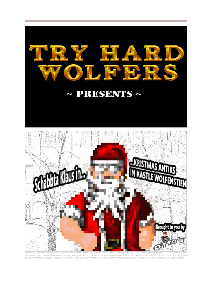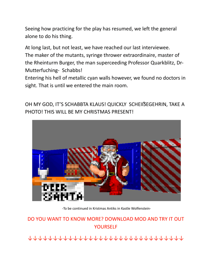 Vol. 64 – 25th of December Posted bytryhardwolfDecember 25, 2021Posted inUncategorizedTags:christmas, mod, Wolf3d, Wolfenstein 3D, xmas https://www.moddb.com/mods/kristmas-antiks-in-kastle-wolfenstein Share this: Click to share on X (Opens in new window) X Click to share on Facebook (Opens in new window) Facebook Like Loading... Related